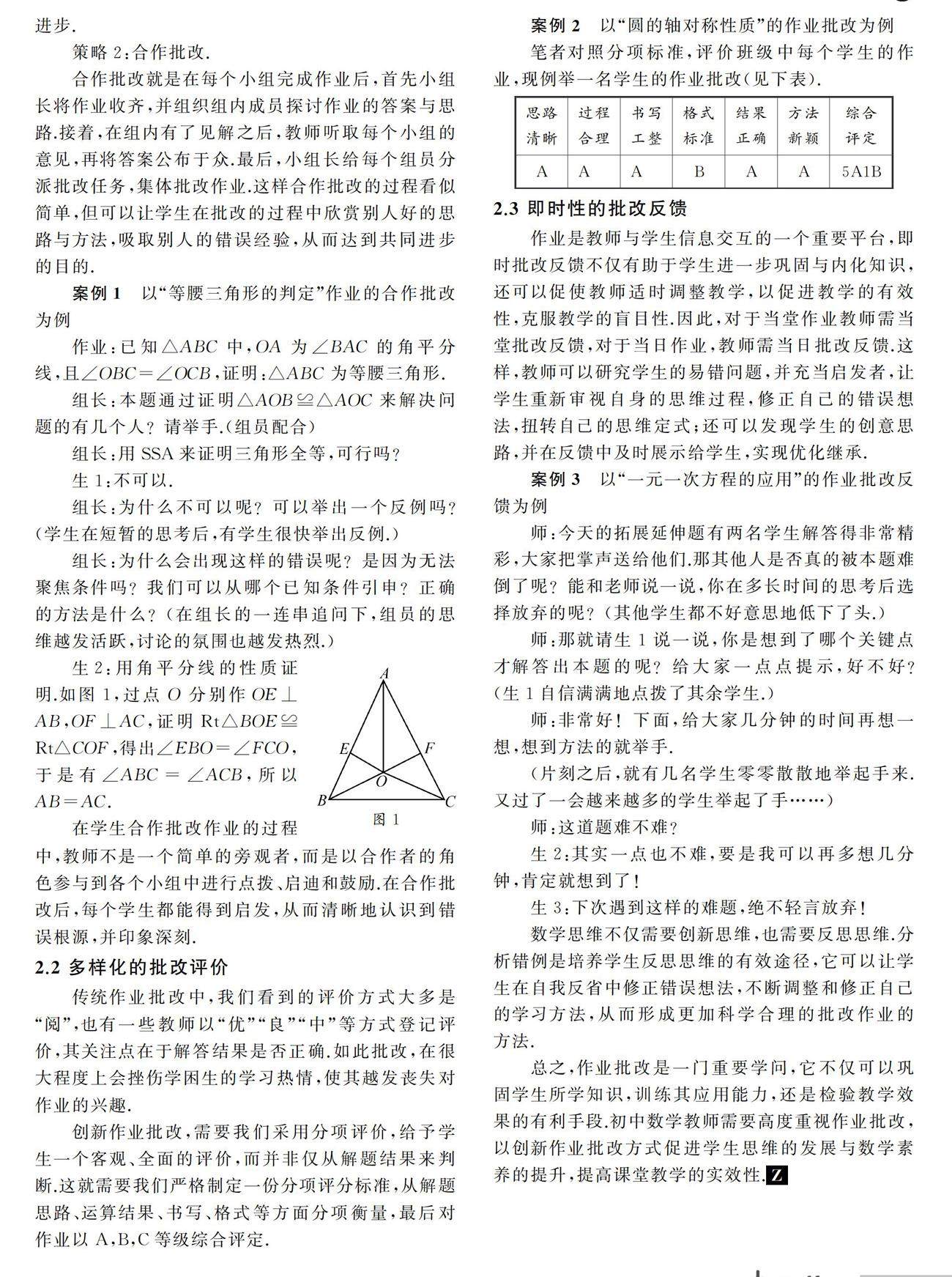 摘要:批改作业是对学生作业的评价过程,是一门重要学问,它不仅可以巩固所学知识,训练应用能力,还是检验教学效果的有利手段.本文研究者结合自身的教学实践简单阐述了当前初中数学作业批改中的误区,并对应提出了提高作业批改有效性的策略.