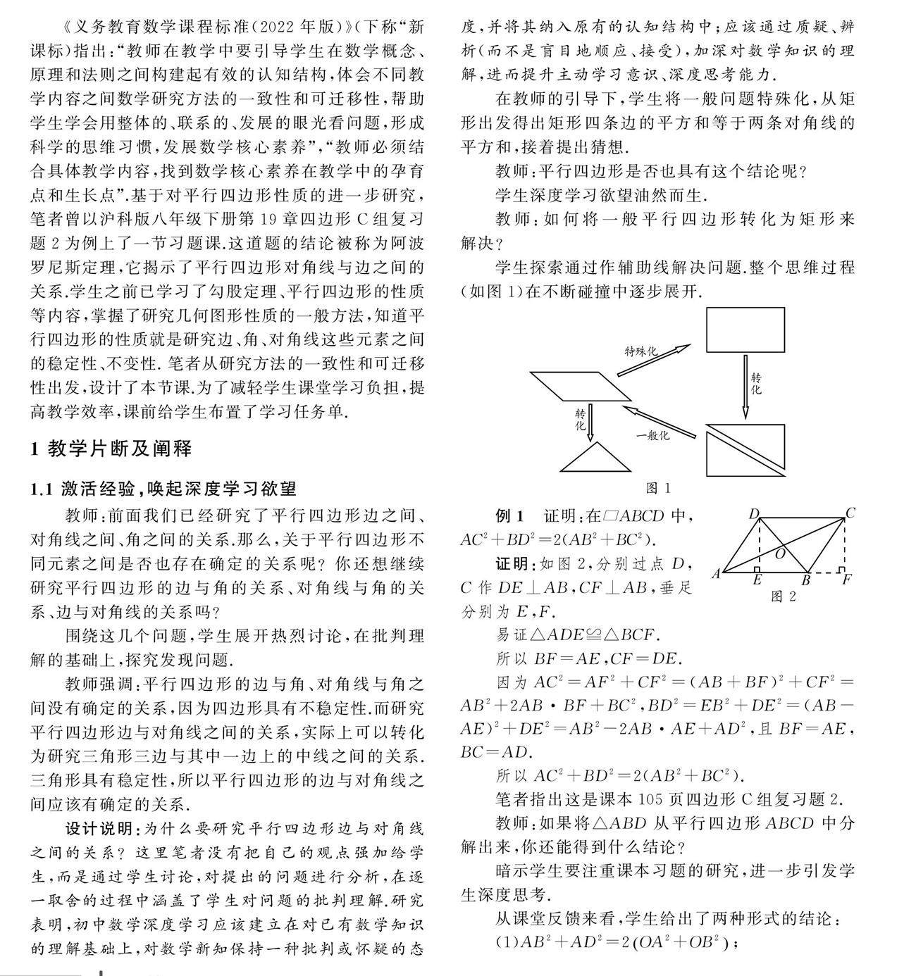 摘要:深度学习是一种基于高阶思维发展的理解性学习,注重对知识的理解和运用,强调通过有意义的方式将新的知识纳入到原有的认知结构中,并且进一步迁移到新的情境中.本文中以一道课本习题为背景,通过激活经验—唤起深度学习欲望,提出问题—催生深度学习发生,迁移应用—提供深度学习机会,评价反思—提升深度学习层次等(剩余2018字)