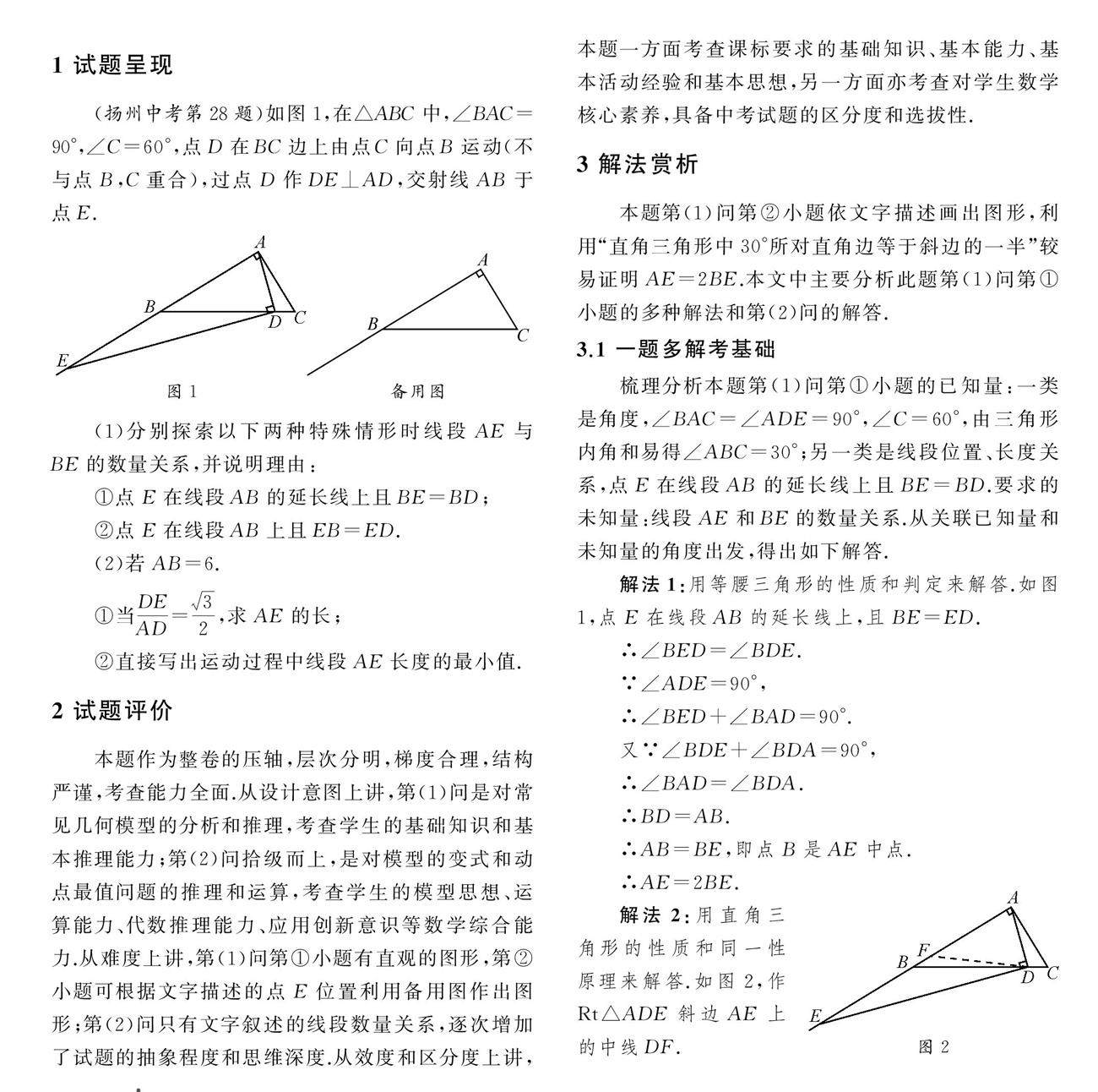 摘要:中考试卷的压轴题是整卷精华,其针对学生有能力要求,对教师的教学有重要启示意义.2022年扬州市中考第28题既紧密联系教材,又具有创新意识,重点考查了“双减”背景下新课标强调的模型意识、代数推理等数学核心素养.
