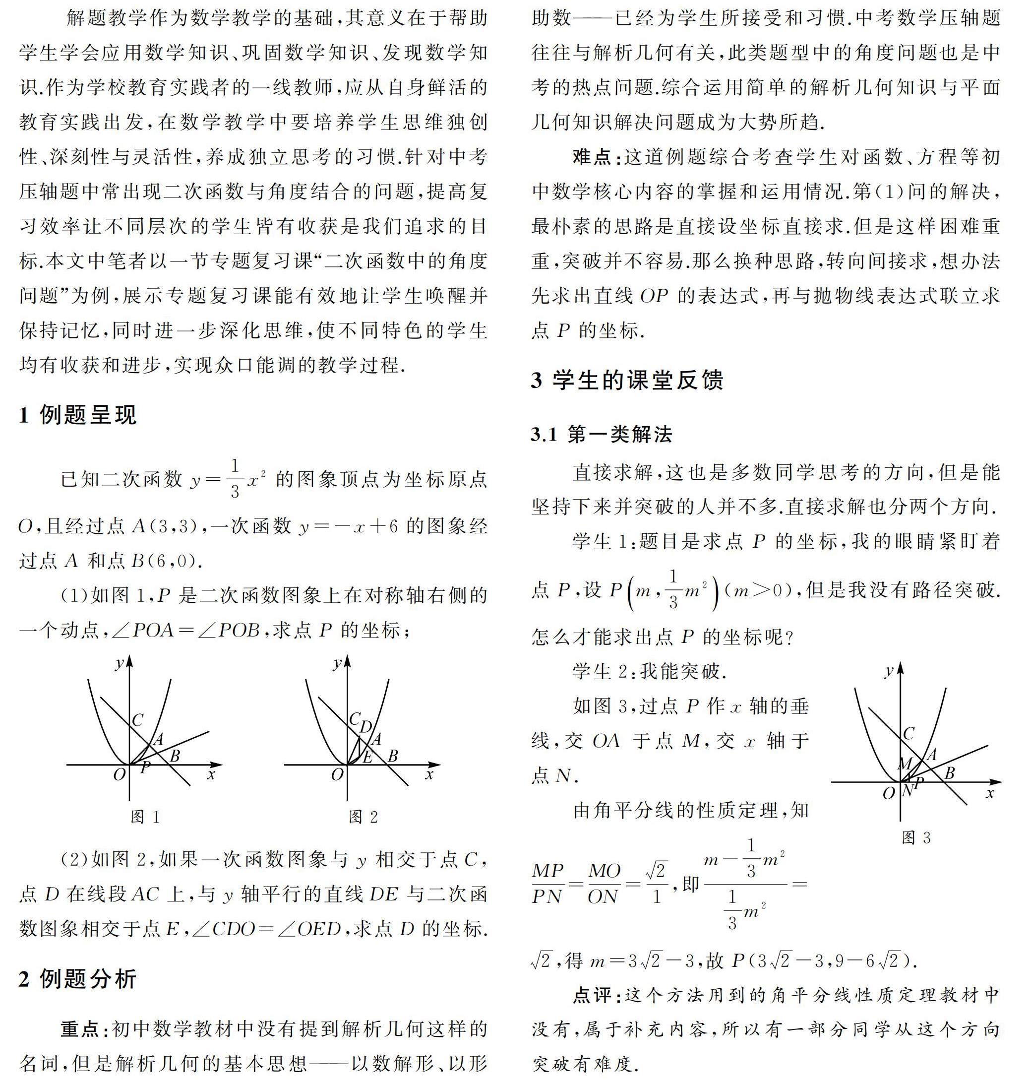 解题教学作为数学教学的基础,其意义在于帮助学生学会应用数学知识、巩固数学知识、发现数学知识.作为学校教育实践者的一线教师,应从自身鲜活的教育实践出发,在数学教学中要培养学生思维独创性、深刻性与灵活性,养成独立思考的习惯.针对中考压轴题中常出现二次函数与角度结合的问题,提高复习效率让不同层次的学生皆有(剩余1487字)