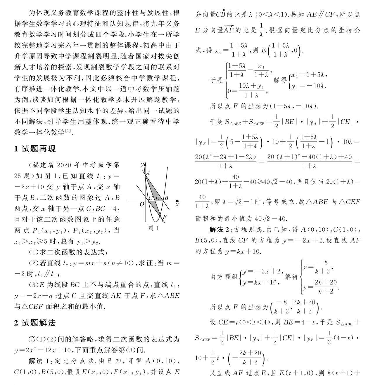 为体现义务教育数学课程的整体性与发展性,根据学生数学学习的心理特征和认知规律,将九年义务教育数学学习时间划分成四个学段.小学生在一所学校完整地学习完六年一贯制的整体课程,初高中由于升学原因导致中学课程割裂明显.随着国家对拔尖创新人才培养的探索,发现割裂数学学段之间的联系对学生的发展极为不利,因此必须(剩余911字)