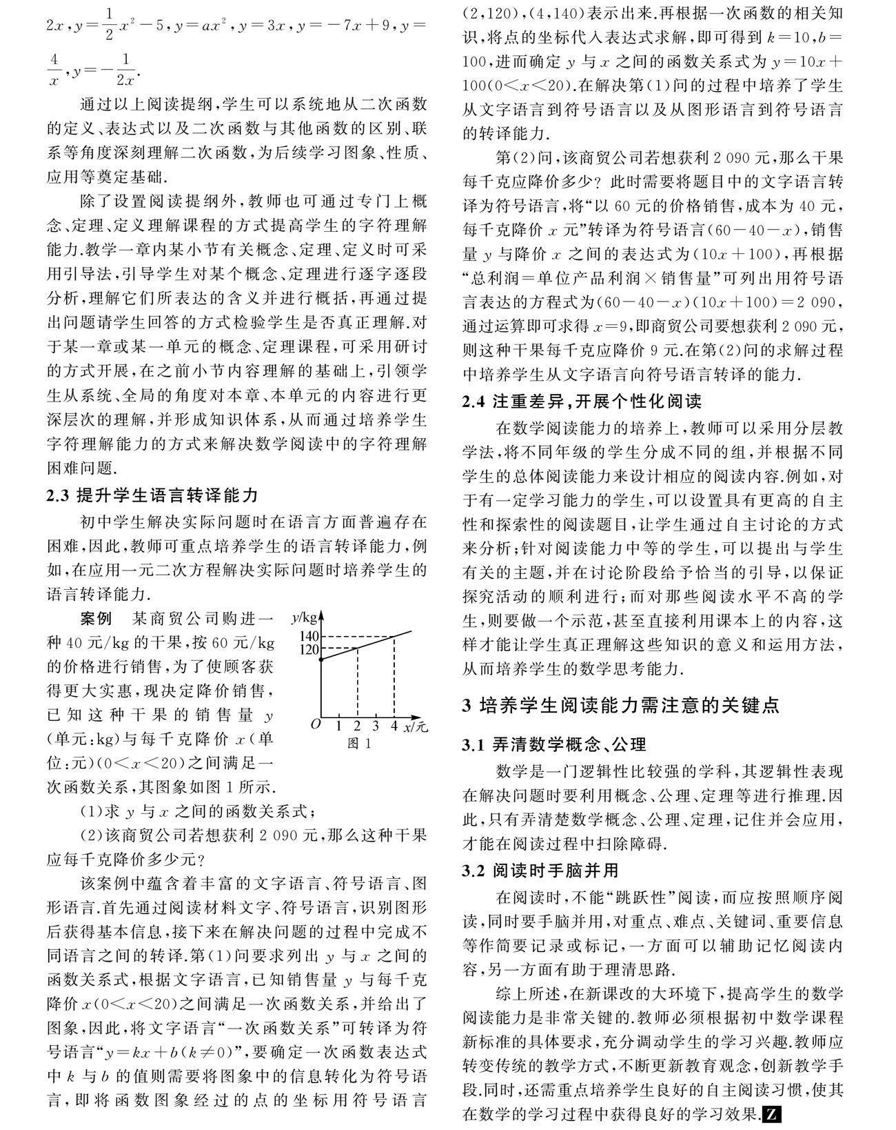 在新一轮课程改革的背景下,初中学生在数学课堂上的地位日益凸显.培养初中学生的阅读(剩余3400字)