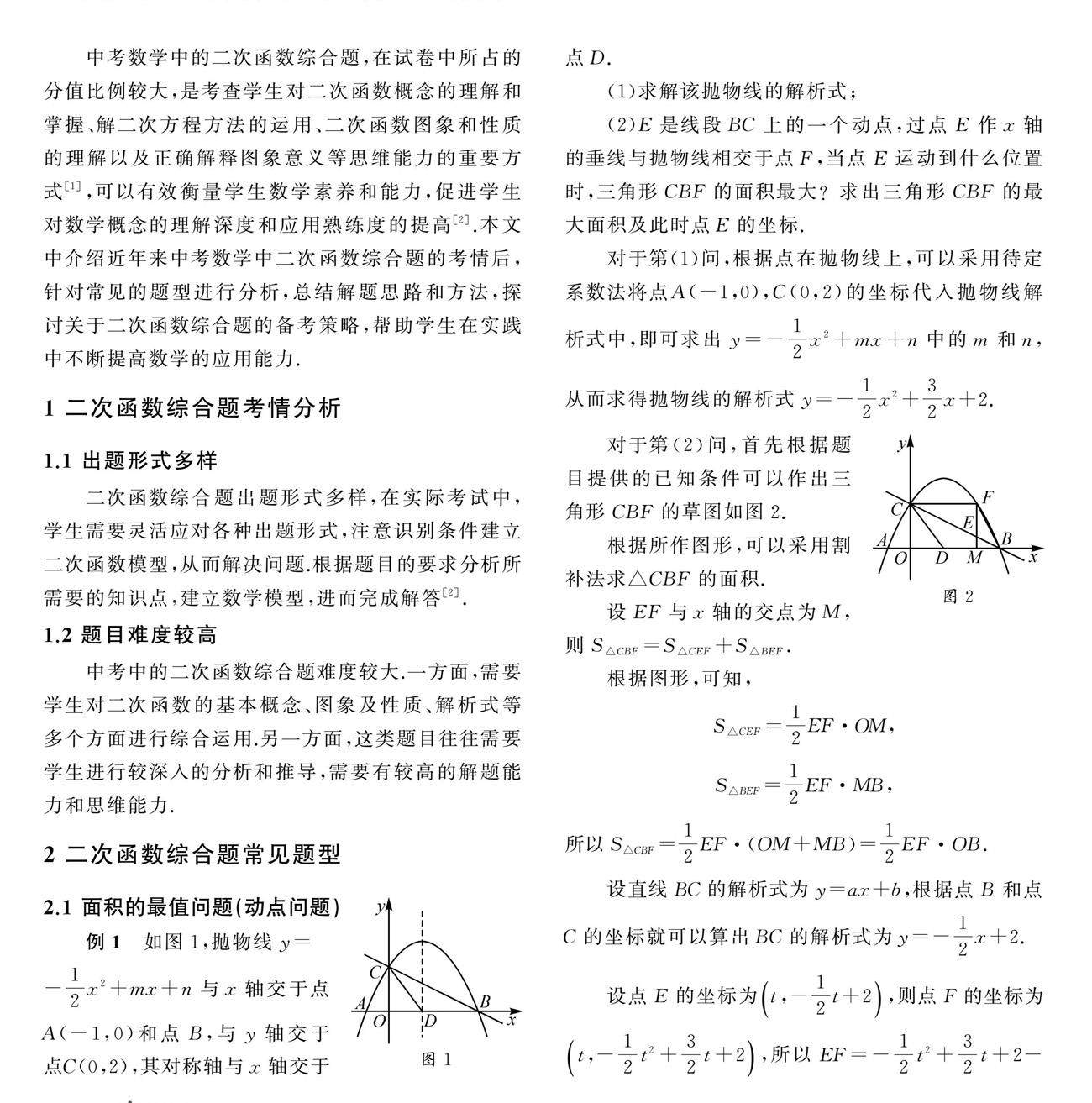 关键词:二次函数;综合题;中考数学;解题分析;备考策略(剩余1248字)