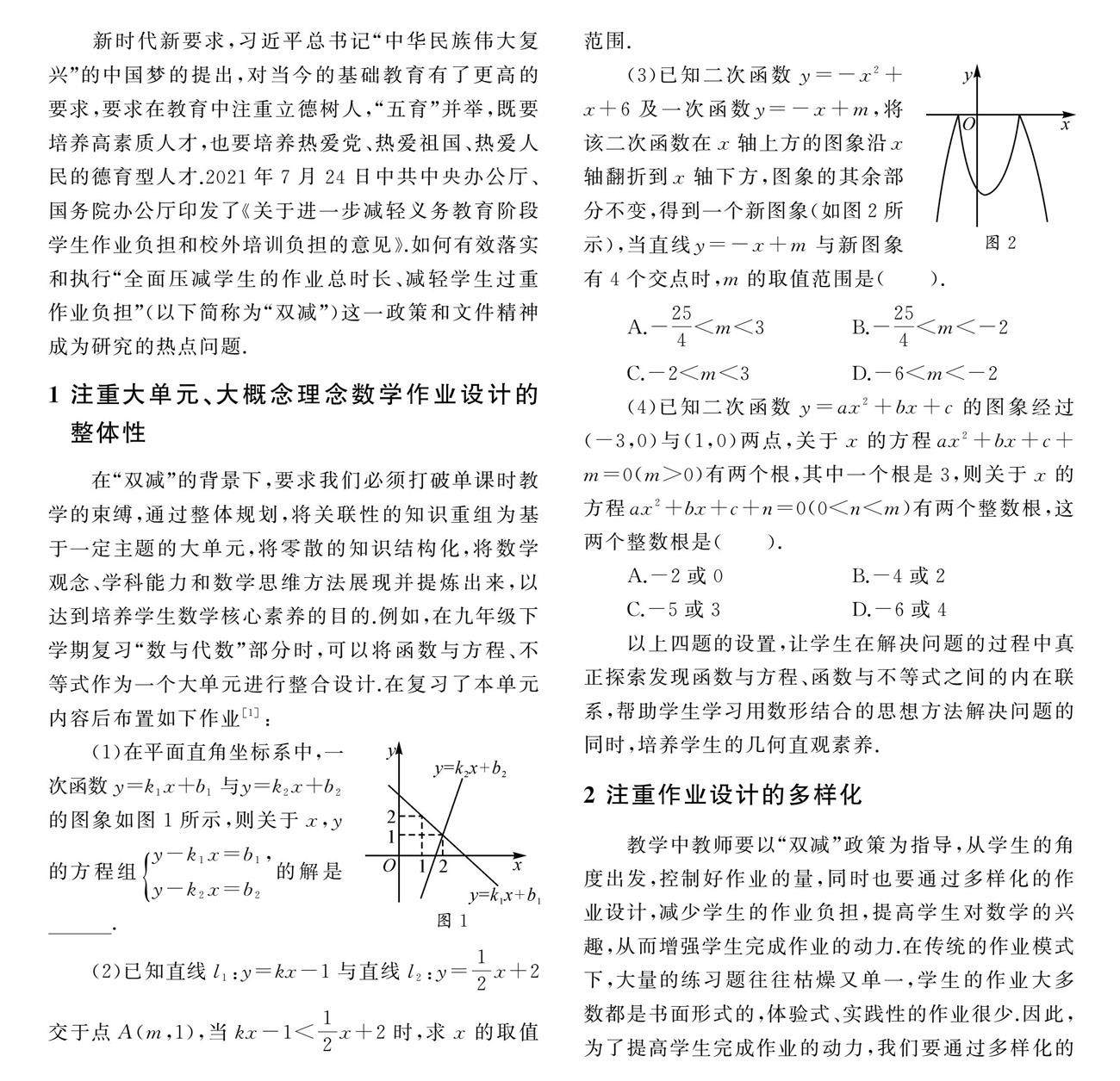 摘要:“双减”政策以学生为主体和中心,其主要目的在于减轻学生的负担,包括作业的负担以及校外培训的负担,尤其是在义务教育阶段.就目前状况而言,大部分学校普遍存在作业数量过大且质量低下的问题.初中数学是基础教育阶段的重要学科,而作业设置对于学生数学核心素养的提升意义重大.因此,在“双减”背景下,应注重作(剩余3040字)