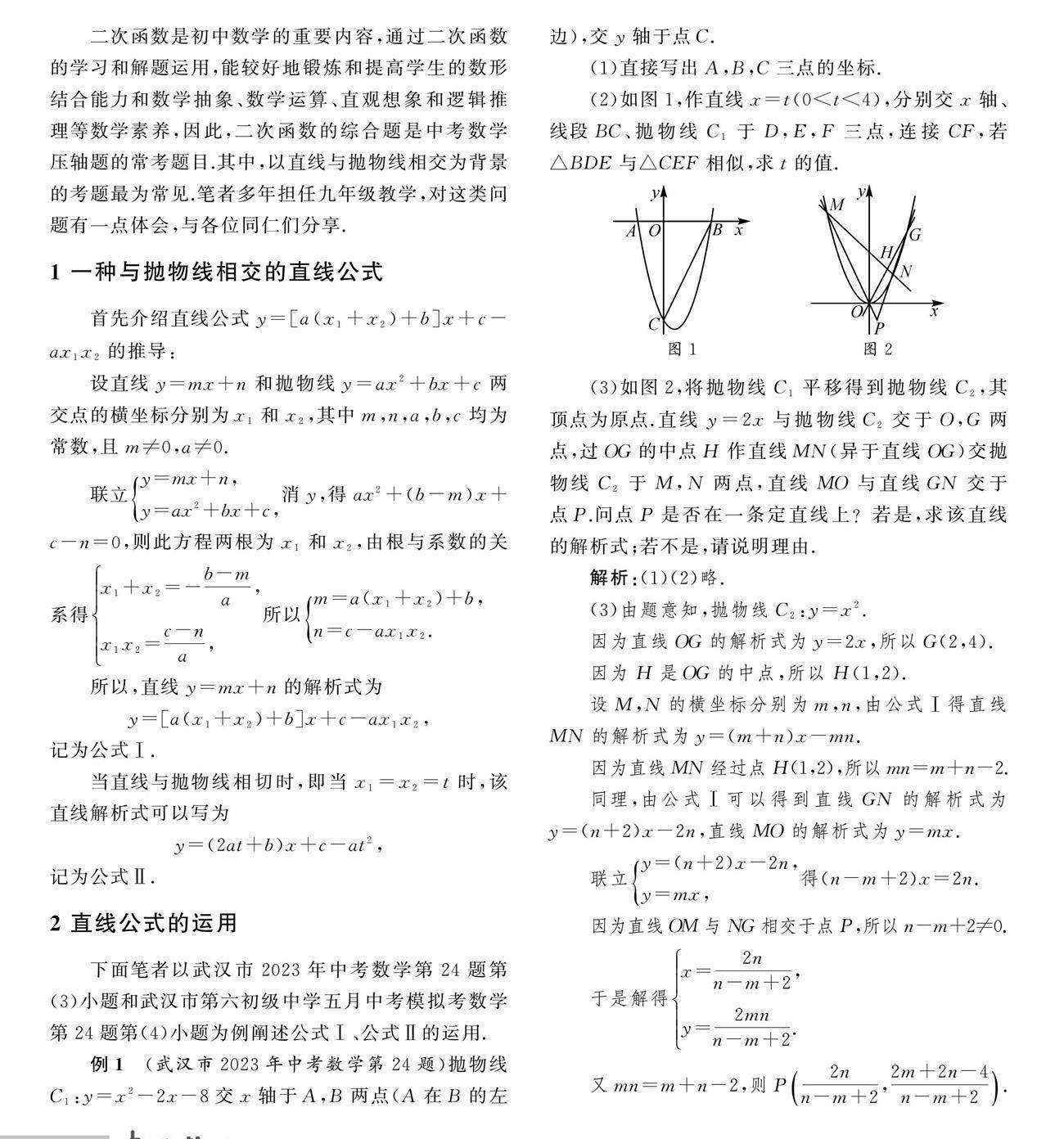 运用公式y=[a(x1+x2)+b]x+c-ax1x2解直线与抛物线相交问题