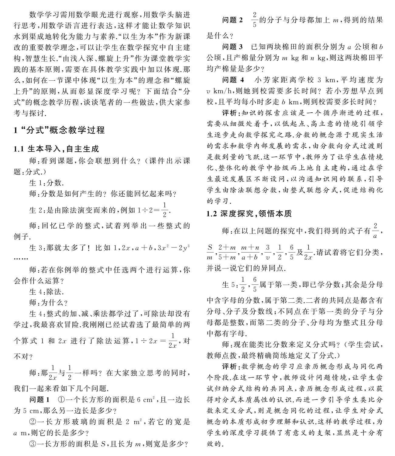数学学习需用数学眼光进行观察,用数学头脑进行思考,用数学语言进行表达,这样才能让数学知识水到渠成地转化为能力与素养.“以生为本”作为新课改的重要教学理念,可以让学生在数学探究中自主建构,智慧生长.“由浅入深、螺旋上升”作为课堂教学实践的基本原则,需要在具体教学实践中加以体现.那么,如何在一节课中体现(剩余3180字)