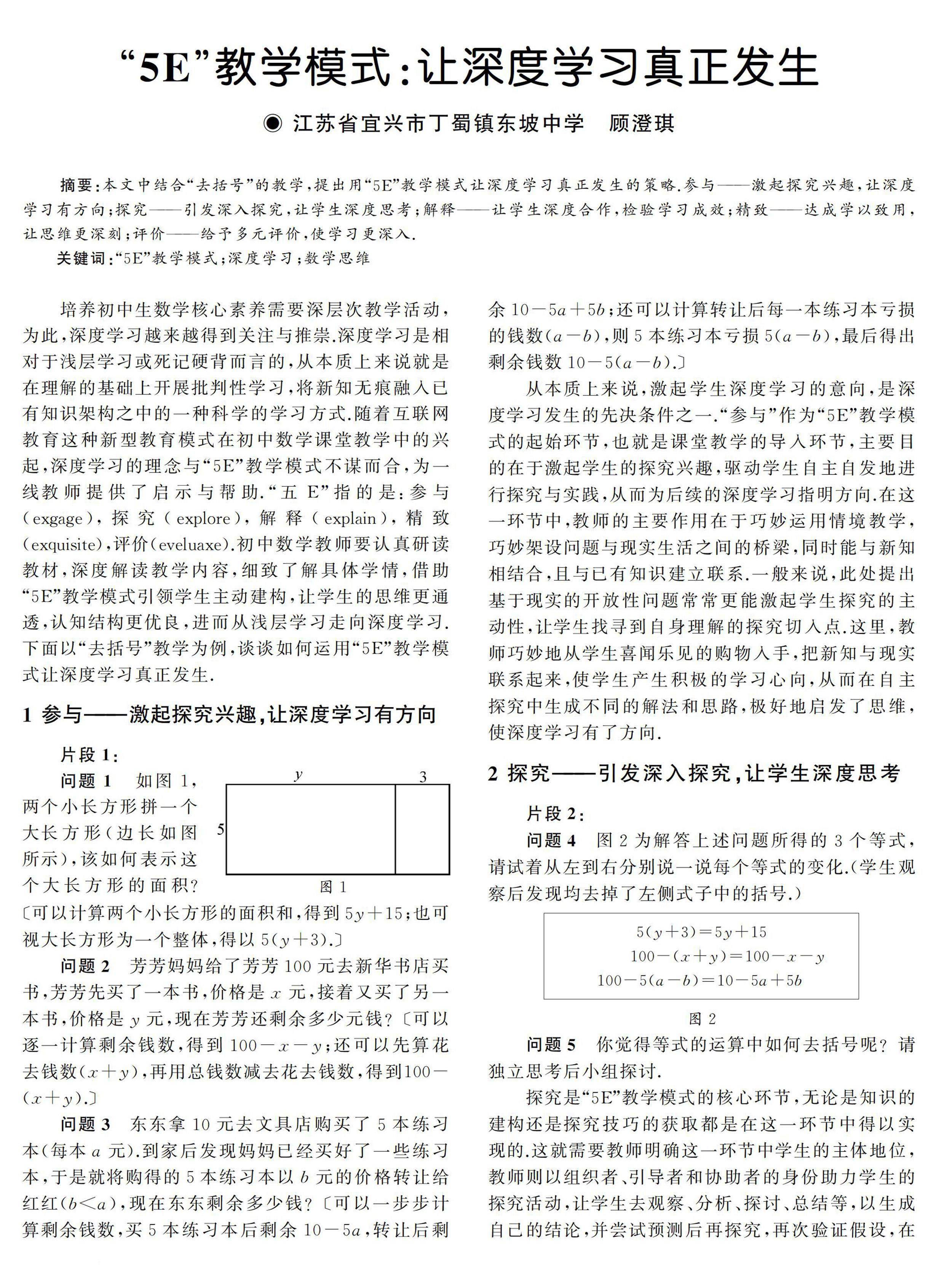 关键词:“5E”教学模式;深(剩余2975字)