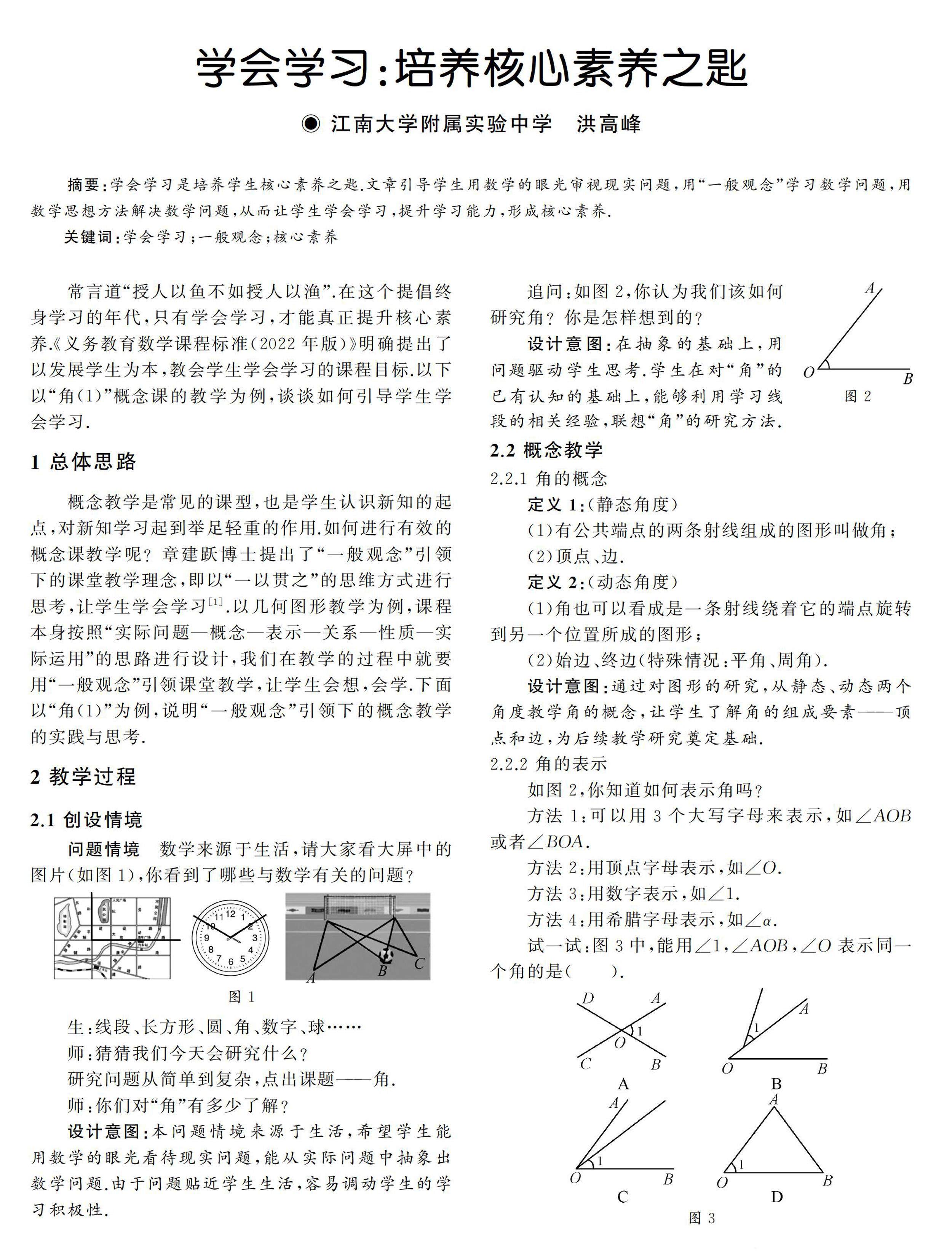摘要:学会学习是培养学生核心素养之匙.文章引导学生用数学的眼光审视现实问题,用“一般观念”学习数学问题,用数学思想方法解决数学问题,从而让学生学会学习,提升学习能力,形成核心素养.