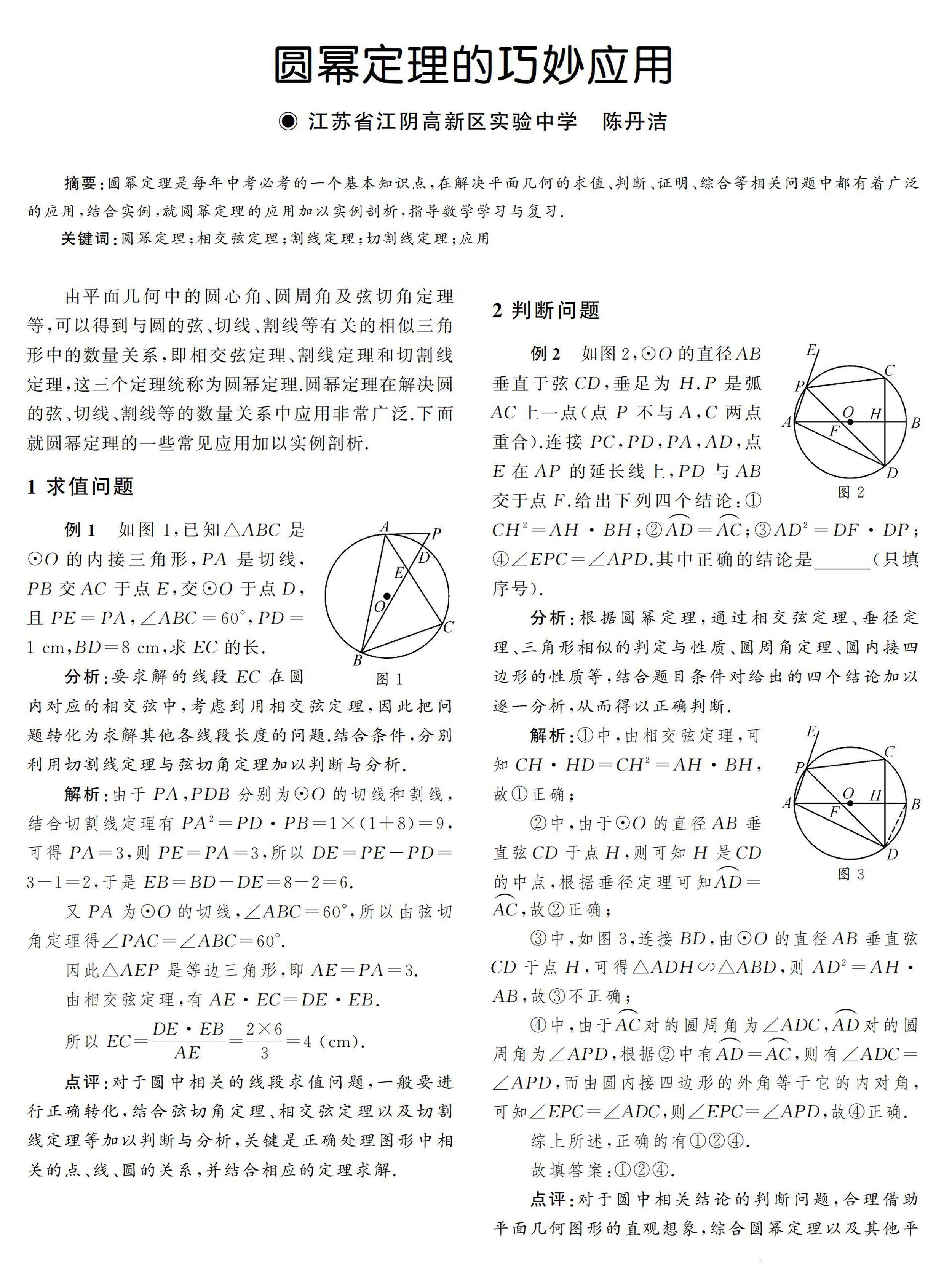 关键词:圆幂定理;相交弦定理;割线定理;切割线定理;应用