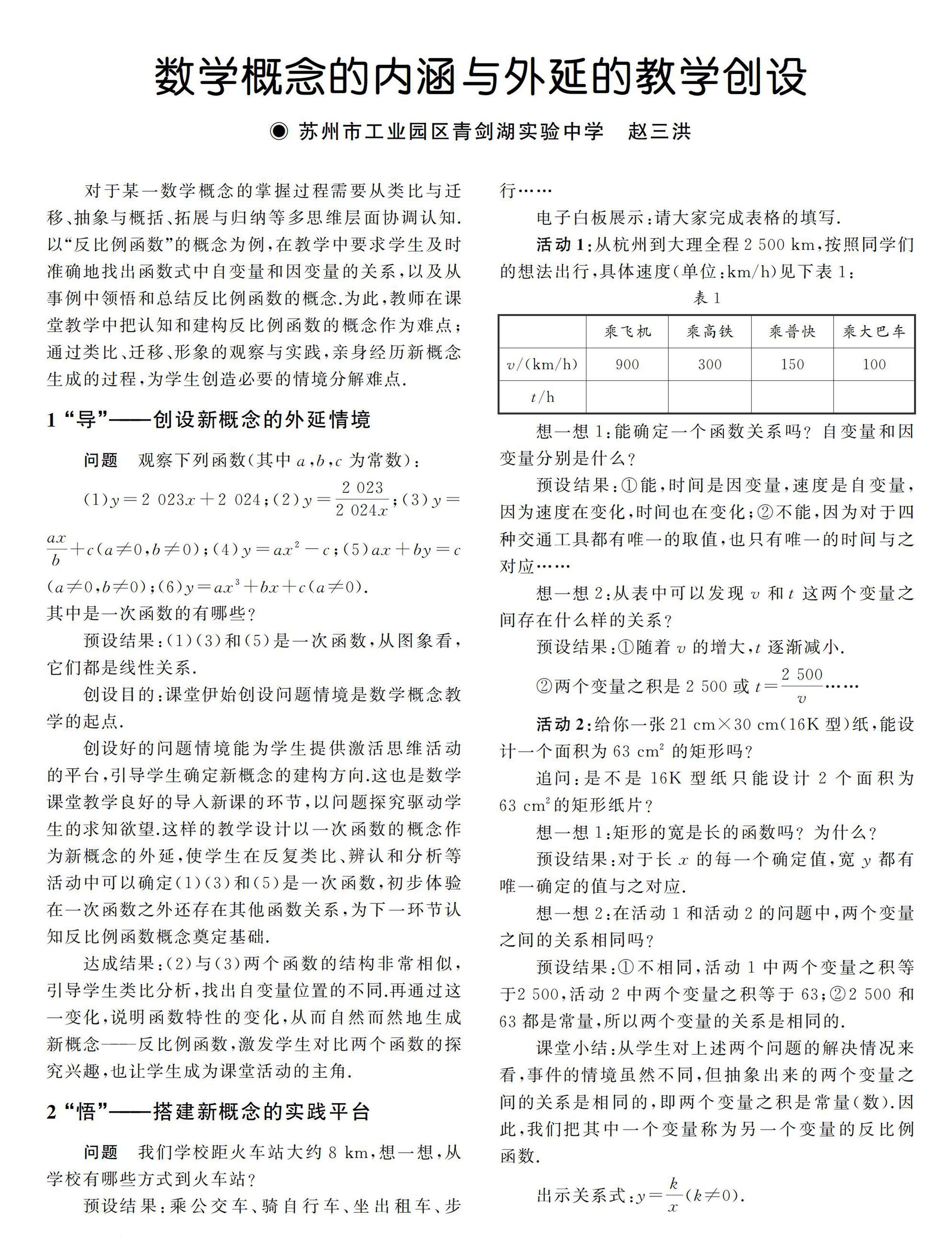 对于某一数学概念的掌握过程需要从类比与迁移、抽象与概括、拓展与归纳等多思维层面协调认知.以“反比例函数”的概念为例,在教学中要求学生及时准确地找出函数式中自变量和因变量的关系,以及从事例中领悟和总结反比例函数的概念.为此,教师在课堂教学中把认知和建构反比例函数的概念作为难点;通过类比、迁移、形象的观(剩余2939字)