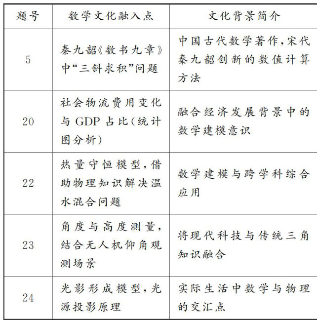 《义务教育数学课程标准(2022年版)》强调通过丰富的数学背景材料、数学发展史、数学与现实生活的联系等内容,引导学生感受数学的价值与魅力,增强文化认同与学科归属感.在此理念指导下,数学试题应体现数学与人文、历史、艺术、科技等领域的融合,培养学生的数学审美与文化理解能力.本文以近两年江苏南京中考数学试(剩余2500字)