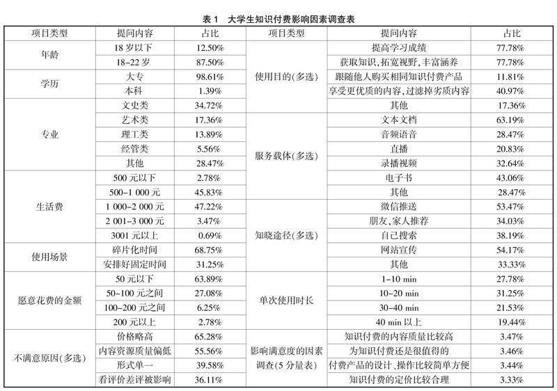大学生知识付费影响因素及图书馆服务转型