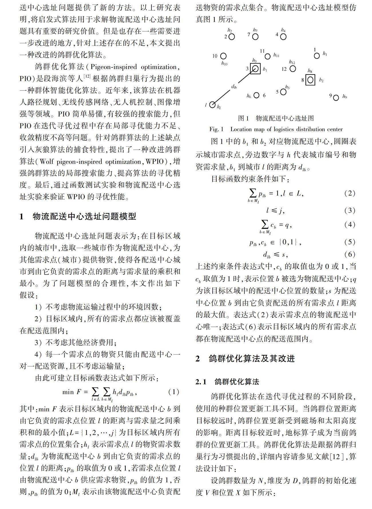 求解物流配送中心选址问题的改进鸽群算法