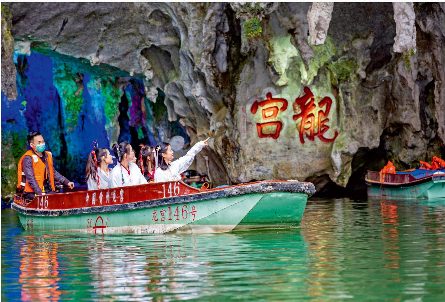 游客乘船在龙宫景区游玩(陈熙·摄影像贵州)