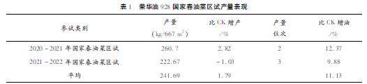 甘蓝型油菜新品种荣华油928的选育及高产栽培技术