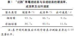 摘 要:草莓传统种苗繁育多利用匍匐茎进行无性繁殖,该方法导致病原物在幼苗中不断积累,种苗质量不断下降,在果实生产中难以保证品质和产量,严重制约草莓产业发展,本研究以‘红颜’草莓组培苗和非组培苗为试材,采用日光温室内高垄双行栽培方法,研究组培苗和非组培苗的缓苗率、成活率、植物学性状、开花结果性状和病害抗性性状,以期为草莓组培苗在生产中的应用提供技术指导。(剩余9035字)
