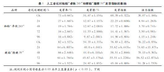 摘 要:为了探究水稻种子在人工老化条件下的劣变特性,本试验以籼稻‘卓恢265’和粳稻‘隆粳59’种子为试材,置于人工老化箱(45℃,相对湿度RH95%)中分别进行人工老化24 h、48 h、72 h、96 h,比较分析了其种子活力与生理生化特性。结果表明,老化对水稻种子活力、保护酶活性、电导率、丙二醛(MDA)影响显著,对可溶性糖含量影响不显著。(剩余10045字)