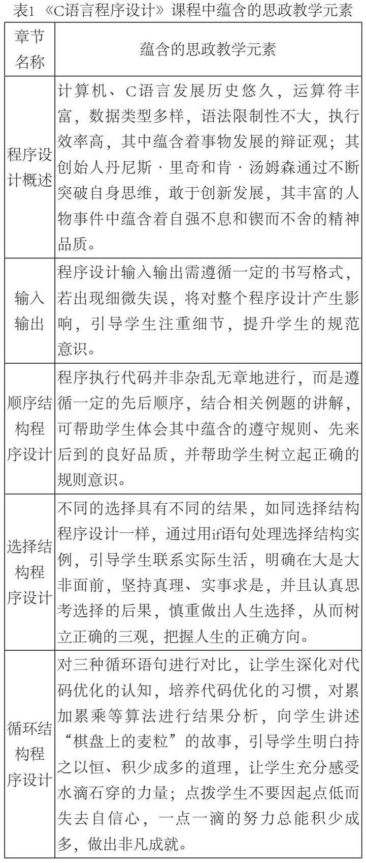 [摘要]课程思政主要以课程为依托,以课程教学为基本方式,贯彻落实学生核心素质提升的教育理念;通过挖掘课程中蕴含着的思政元素,科学、合理设计课程教学环节,采用多样性教学方法,促进学生知识体系丰富和思政认识提升。本文针对《C语言程序设计》课程为依托,对其蕴含的思政元素展开讨论,探究《C语言程序设计》教学中的思政元素运用策略,希望对一线教师开展教学工作有所参考。(剩余3679字)