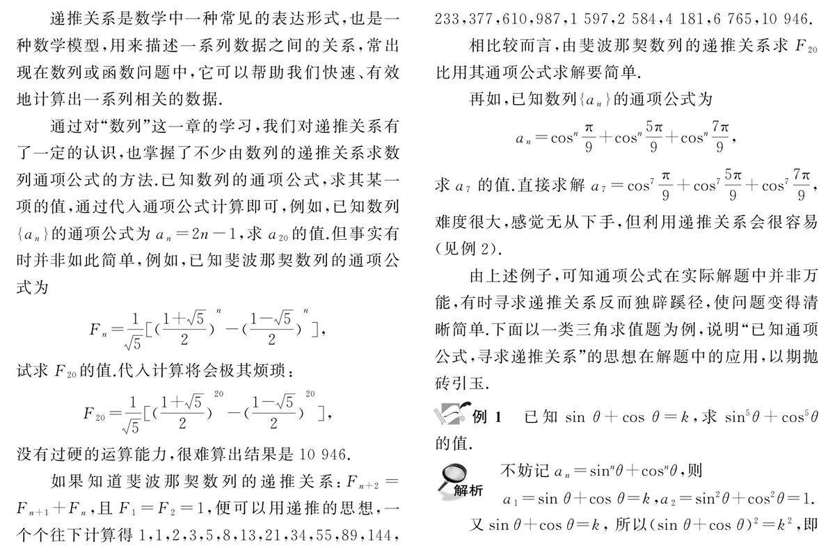 构造递推关系巧解一类三角求值题