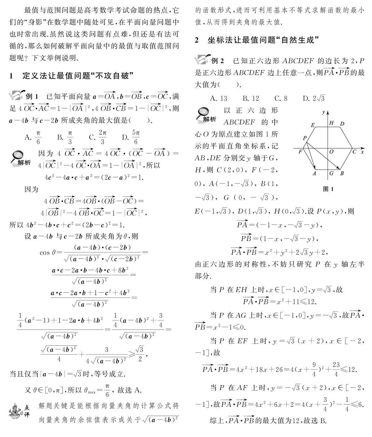 最值与范围问题是高考数学考试命题的热点,它们的“身影”在数学题中随处可见,在平面向量问题中也时常出现.(剩余51字)
