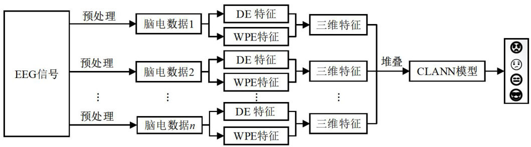 Abstract:Toaddress theissueoflimitedemotional featuresand ineffectiveutilizationof inter-electrode channelinformation inEG-basedemotionrecognitionthisstudyproposesanEEGemotionrecognitiomethodformulti-dmainfeaturefusio.First,a thre-diensioalfatuetctuesostuctedasedoEEGaacterstistegatigditialtropaturs,aeecket energyfeatures,andspatialfeaturesbetweenelectrodechanelstofullpreseeectiveiformationinthefrequencytiead spatial domains.Then,forthe3Dfeaturestructure,ahybridEEGemotionrecognitionmodelnamedCLANNisbuiltbycombining 3Dconvolutialeuraletwork(3DC),ongsormemryetork,andatetiomehasm.Experimetalts onthe DEAP(dataset foremotion analysis using physiological signals)demonstrate thatthe CLANN model achievesa binary classificationaccuracyof 94.50% ,improving the performance of EEG-based emotion recognition.