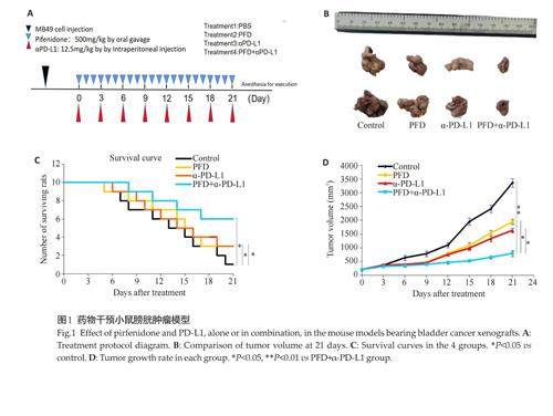 吡非尼酮联合PD-L1抑制剂抑制小鼠异位膀胱肿瘤的生长