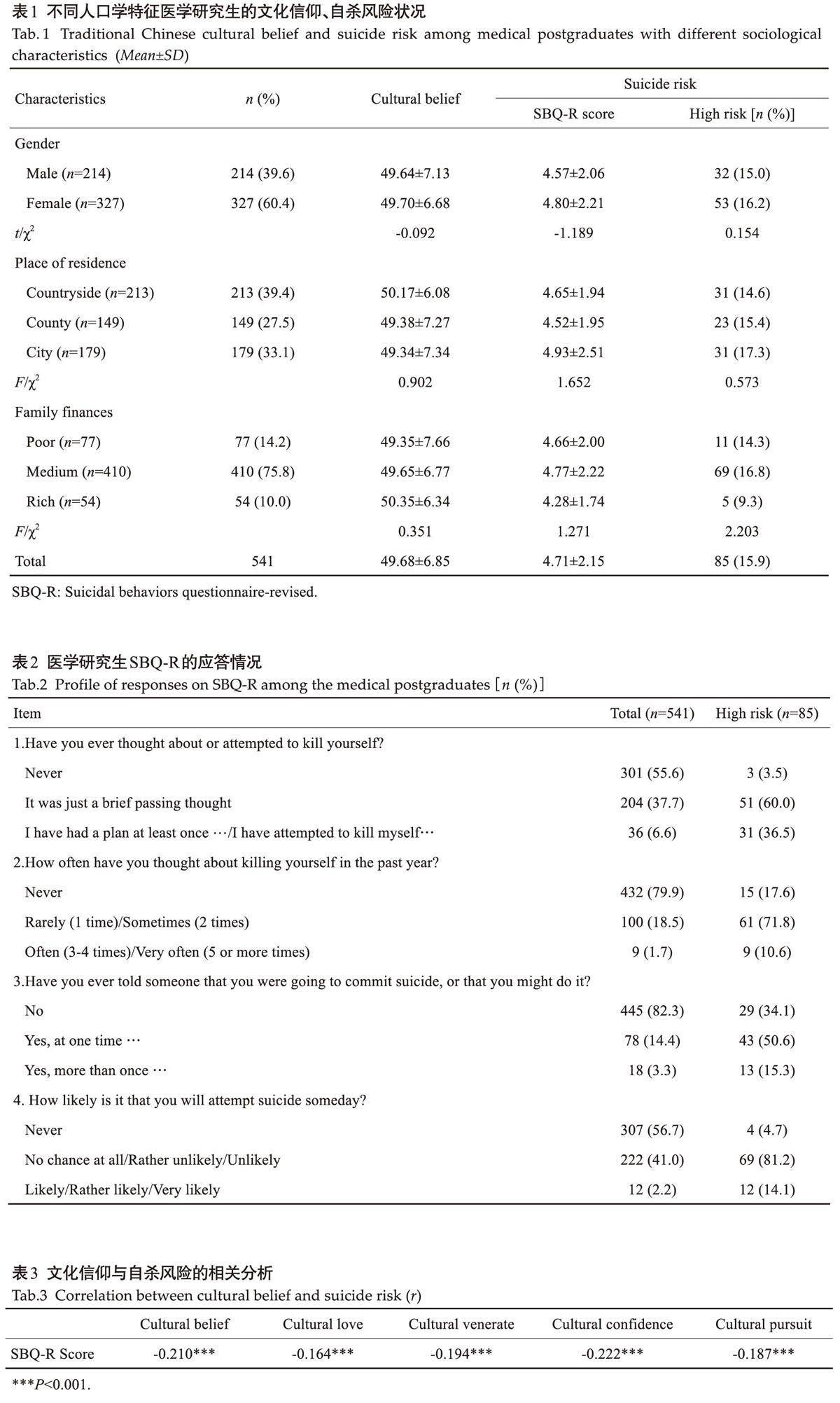 关键词:医学研究生;中国传统文化;文化信仰;自杀风险;自杀意念