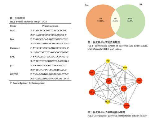 摘要:目的 基于网络药理学探讨槲皮素治疗心力衰竭的作用机制。方法 通过中药系统药理学数据库和Swiss ADME数据库检索槲皮素的作用靶点。利用Genecards、OMIM数据库检索心力衰竭相关靶点。使用DAVID数据库获取交集靶点的GO分析和KEGG信号通路富集分析。交集靶点使用STRING数据库和Cytoscape软件进行蛋白互作分析,并筛选核心基因。(剩余15928字)