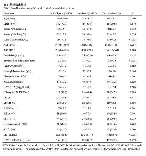 血清色氨酸用于乙肝相关慢加急性肝衰竭90 d死亡风险分层管理的潜在价值:一项多中心回顾性研究