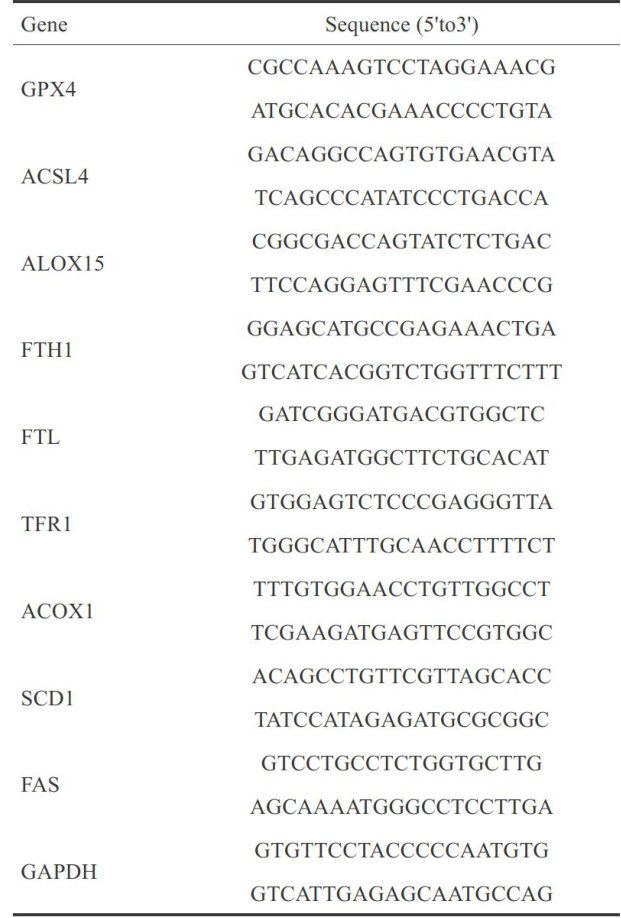 摘要:目的基于GPX4/ACSL4/ALOX15信号通路探讨肝豆扶木汤(GDFMD)对tx-J小鼠抑制铁死亡改善肝脏脂肪变性作用的机制。方法以6只同系野生型WT小鼠作为对照组,30只tx-J小鼠随机分为模型组、GDFMD低、中、高剂量组、Fer-1组。对照组及模型组予以等量生理盐水,GDFMD低中高剂量分别予以 3.48g/kg.6.96g/kg.13.92g/kg 灌胃,Fer-1组 1mg/(kg⋅d) ,腹腔注射,1次/d,持续14d;油红、HE染色观察肝脏组织脂质沉积与病理情况;采用谷丙转氨酶(ALT)、谷草转氨酶(AST)、白蛋白(ALB)碱性磷酸酶(AKP)试剂盒观察肝功能指标;WB及PCR测量小鼠内GPX4、ACSL4、ALOX15、FTH1、FLT、TFR1、FAS、SCD1、ACOX1蛋白及mRNA的表达;测定肝脏组织内 Fe2+ Cu2+ 的含量;丙二醛(MDA)、活性氧(ROS)、超氧化物歧化酶(SOD)还原型谷胱甘肽(GSH)、4-羟基壬烯醛(4-HNE)试剂盒测定氧化应激指标。(剩余15366字)