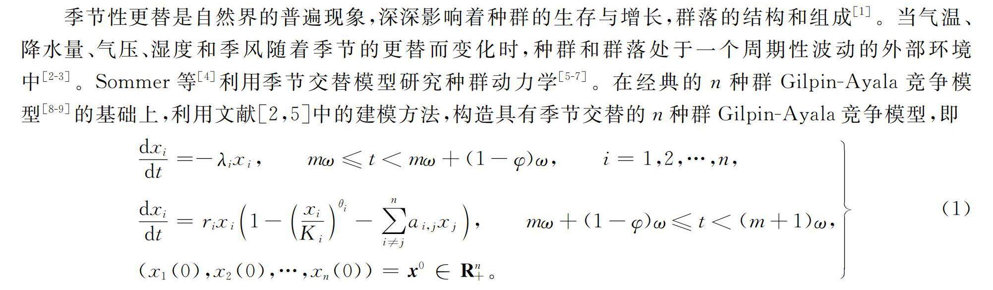 关键词:季节交替;Gilpin-Ayala竞争模型;周期解;庞加莱映射;负载单形