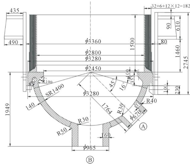 Keywords:ammonia synthesis tower;spherical head;support;finite element;stress analysis doi:10.3969/j.issn.1004-8901.2025.04.007