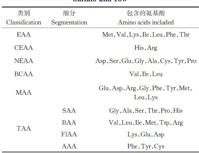 水牛奶和奶牛奶中的氨基酸差异分析及营养评价