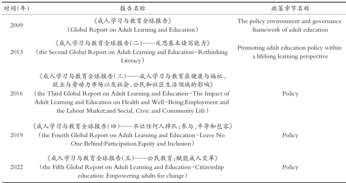 2022年,《成人学习与教育全球报告(五)—公民教育:赋能成人变革》(以下简称报告五)在第七届世界成人教育大会上正式发布[]。该报告立足终身学习视角,在联合国可持续发展目标框架内,系统探讨了成人学习与教育的政策方向问题[21。自2009年以来,联合国教科文组织陆续发布了5份《成人学习和教育全球报告》。(剩余11414字)