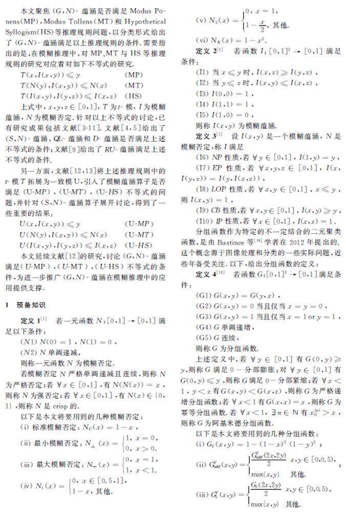 (G,N)蕴涵满足U-MP、U-MT、U-HS不等式的条件