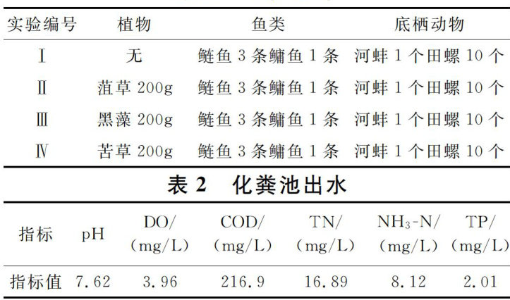 底栖动物与鱼类环境中三种沉水植物对农村生活污水净化效果的影响