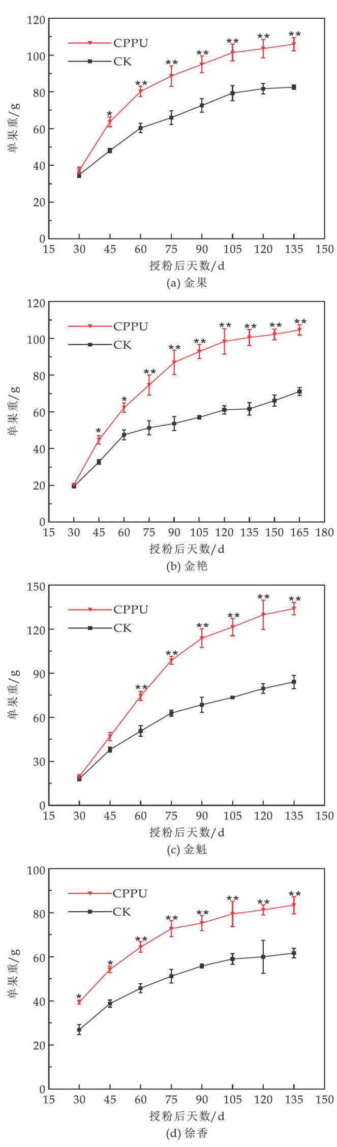 氯吡脲CPPU处理对6个弼猴桃品种果实发育与品质的影响