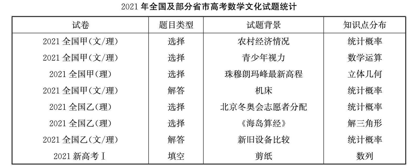 关键词:数学文化 高考试题 数学应用 数学教育