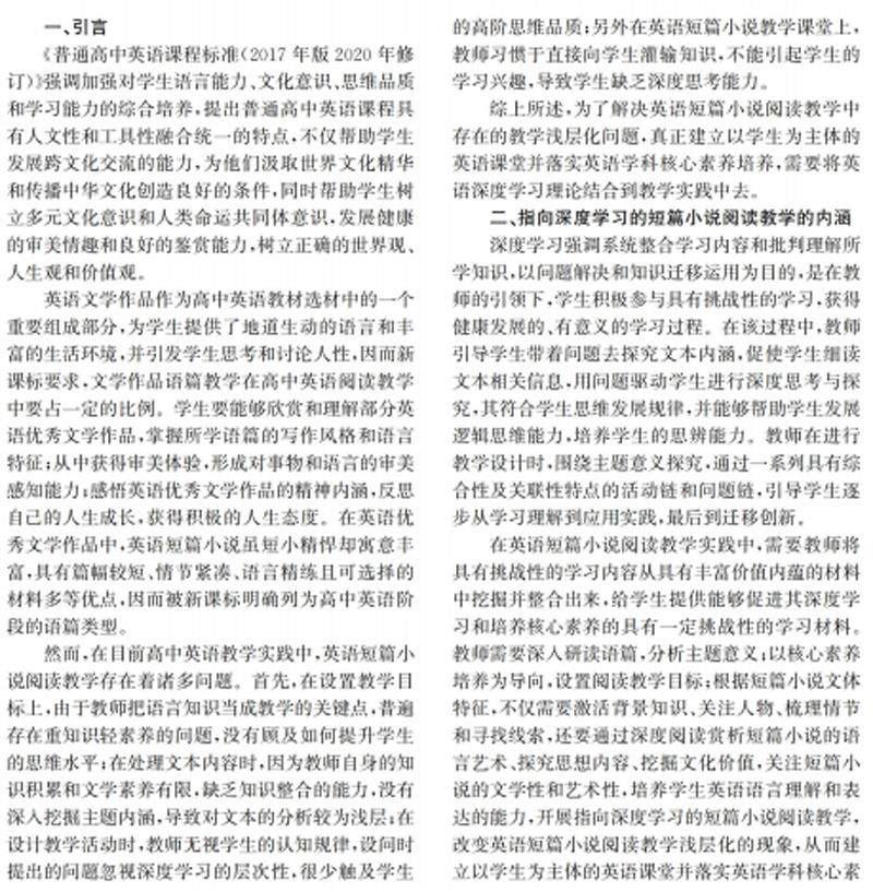 指向深度学习的高中英语短篇小说阅读教学实践