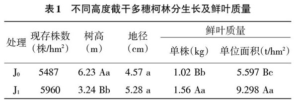 摘 要:通过开展多穗柯叶用林不同高度截干、不同程度修剪、不同整形方式经营效果的试验,以确定适宜的截干高度、修剪程度和整形方式。结果表明:随着截干高度的降低,树高逐渐降低。4年生多穗柯叶用林,在主干30cm处截干比在60cm、90cm处截干,平均木鲜叶采摘量分别增加18.2%、6.8%,单位面积鲜叶采摘量分别增加23.0%、9.7%。(剩余5989字)