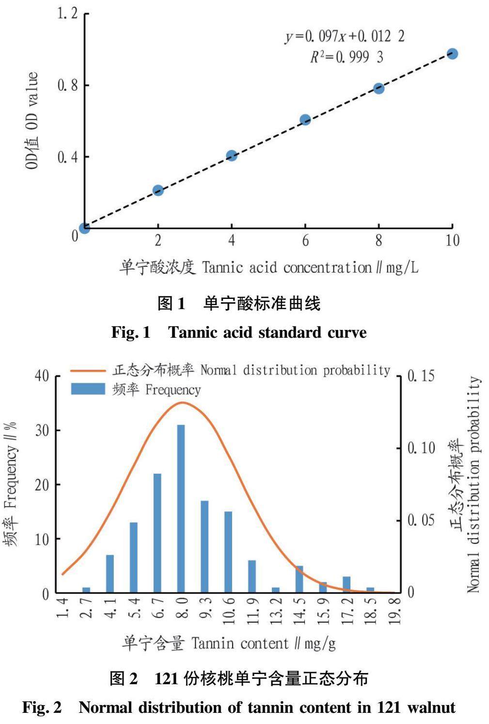 摘要 以121份核桃种质资源为试材,根据感官评价将其分为不涩(0级)、稍涩(1级)、较涩(2级)、涩(3级)4个涩味等级,并在此基础上测定单宁含量,以此结果为标准建立核桃果实的涩味评价体系。结果表明,单宁含量在121份核桃资源中符合正态分布规律,单宁含量与涩味程度呈极显著正相关(P<0.01),相关系数达到0.682。(剩余7791字)