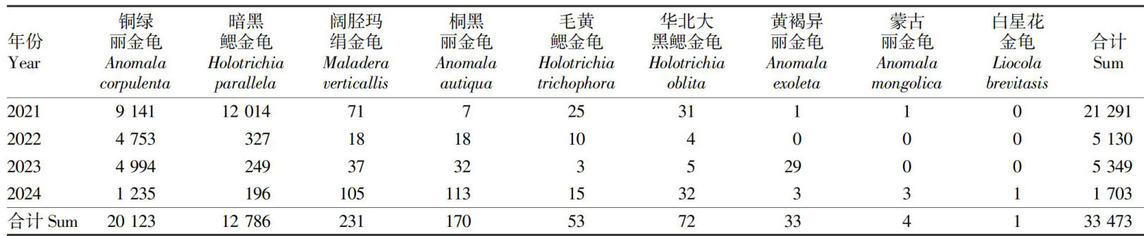 关键词铜绿丽金龟;暗黑鳃金龟;金龟子;虫情测报灯;种群动态