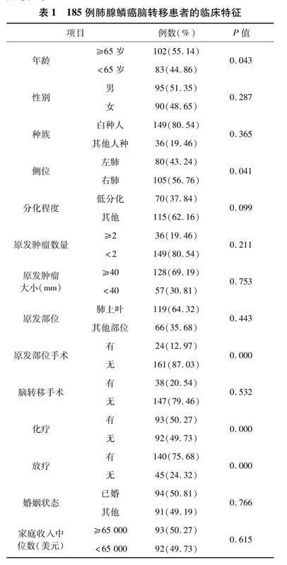 基于SEER数据库肺腺鳞癌脑转后移术后预因素分析
