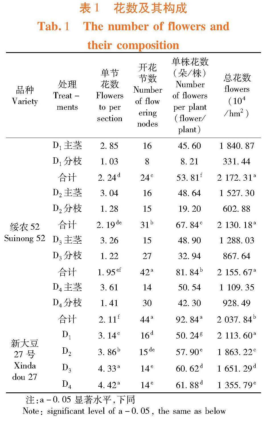 密度对不同株型春大豆品种花荚形成和产量的影响