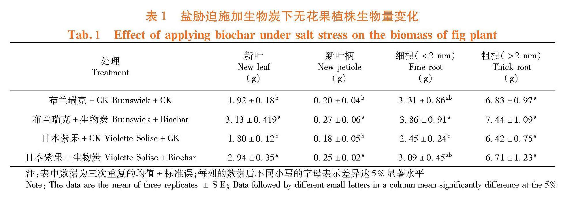 施加生物炭对盐胁迫下无花果生物量叶绿素荧光参数及离子分配的影响