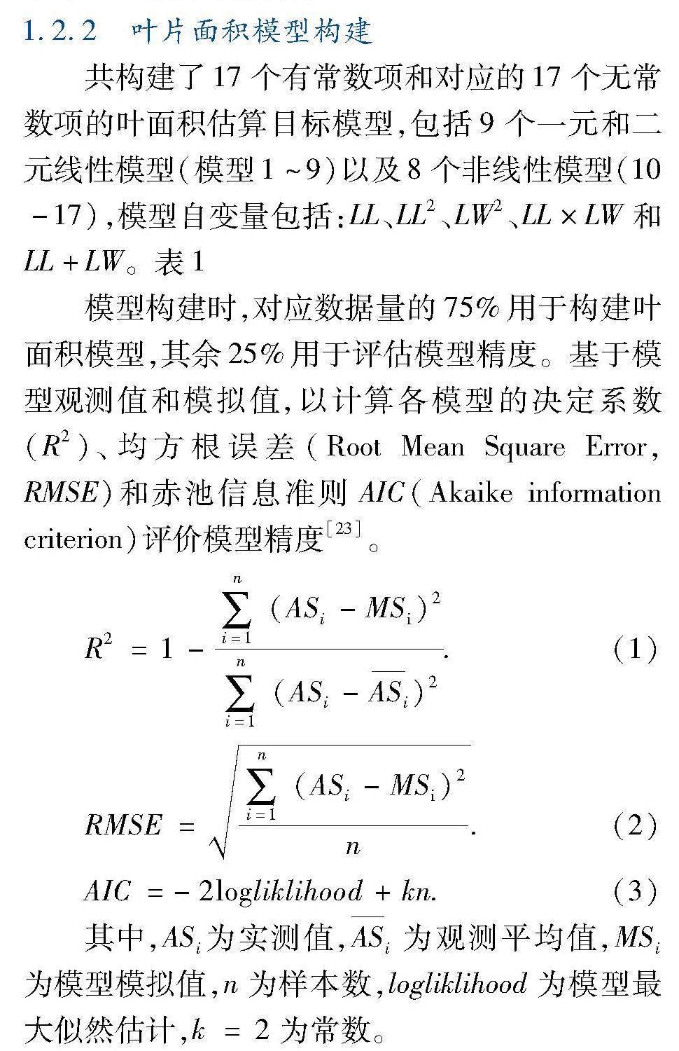 【方法】以富士及嘎啦不同长度的营养枝梢和果台枝梢叶片为试材,采用数字扫描仪获取叶片长度(LL)、宽度(LW)和叶面积(LA)等叶片形态参数,并采用决定系数(R2)、均方根误差(RMSE)、赤池信息准则(AIC)对建立的17个有常数项和无常数项叶面积模型精度进行筛选和适宜性评价。(剩余19706字)