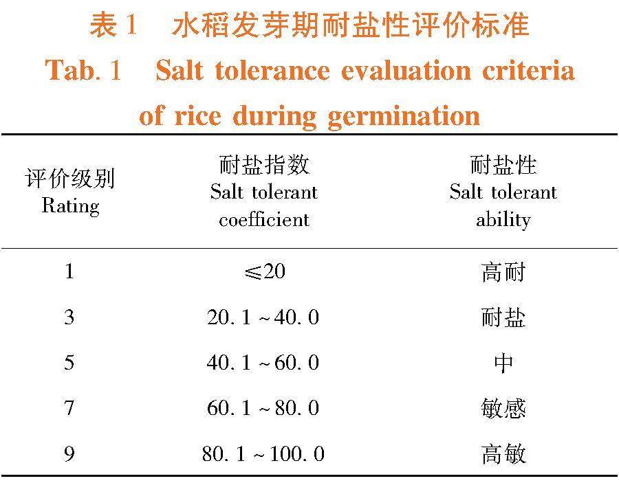 水稻重组自交系群体芽期和苗期耐盐性鉴定与评价