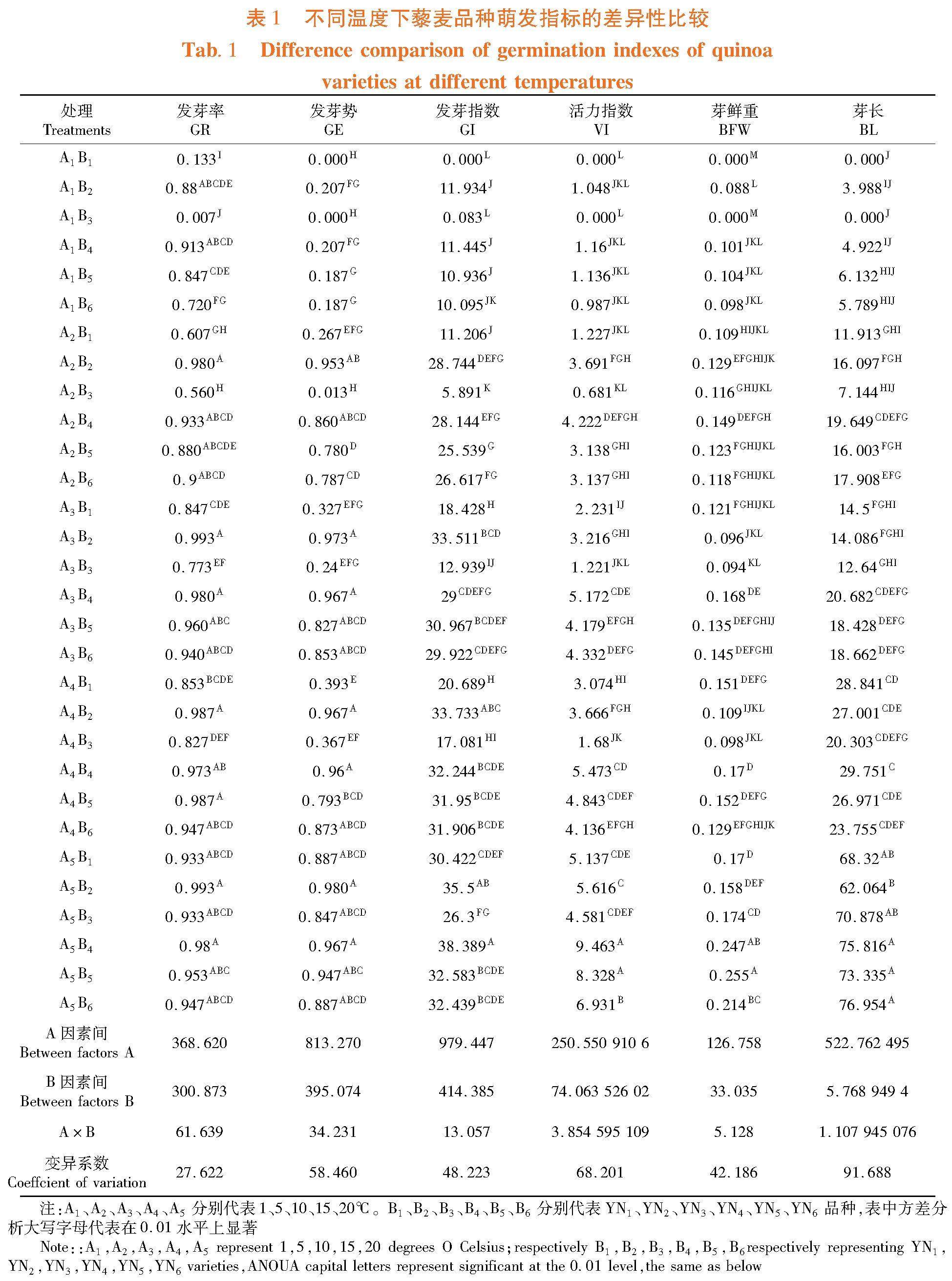 藜麦种子对萌发温度的响应及低温胁迫萌发能力鉴定