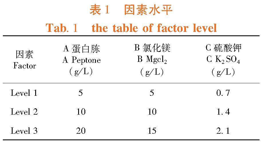 【结果】利用正交试验优化摇瓶发酵培养基,培养基配方为蛋白胨 20 g/L,MgCl2 15 g/L,K2SO4 1.4 g/L。(剩余15228字)