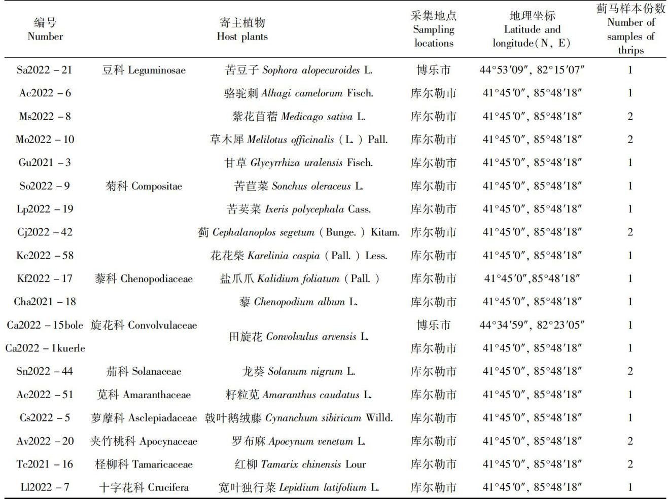 新疆棉田周边常见杂草上蓟马种类鉴定及其亲缘关系分析